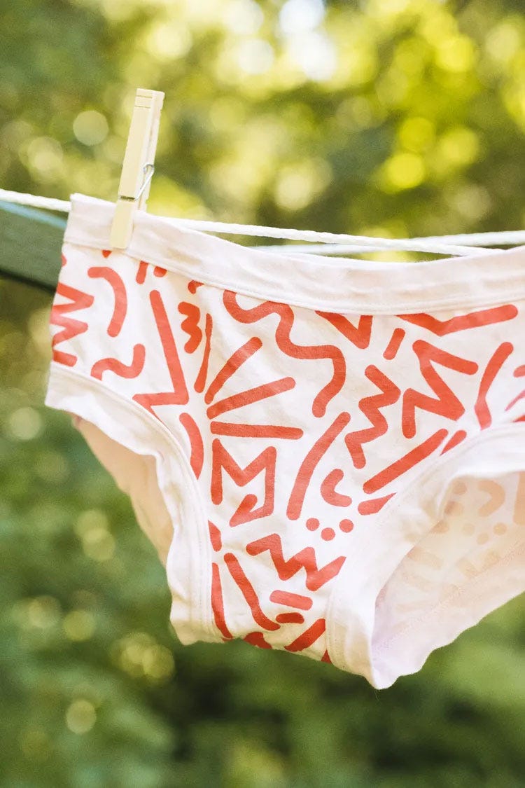 Printed underwear, on the other hand, involves applying designs on top of the fabric, kind of like screen printing a T-shirt, but way more high tech. Depending on the method—rotary screen printing, digital printing or heat transfer—the ink or pigment sits on the surface of the fabric… which the fabric may not feel quite as soft or stretchy as its solid counterpart.